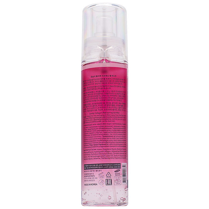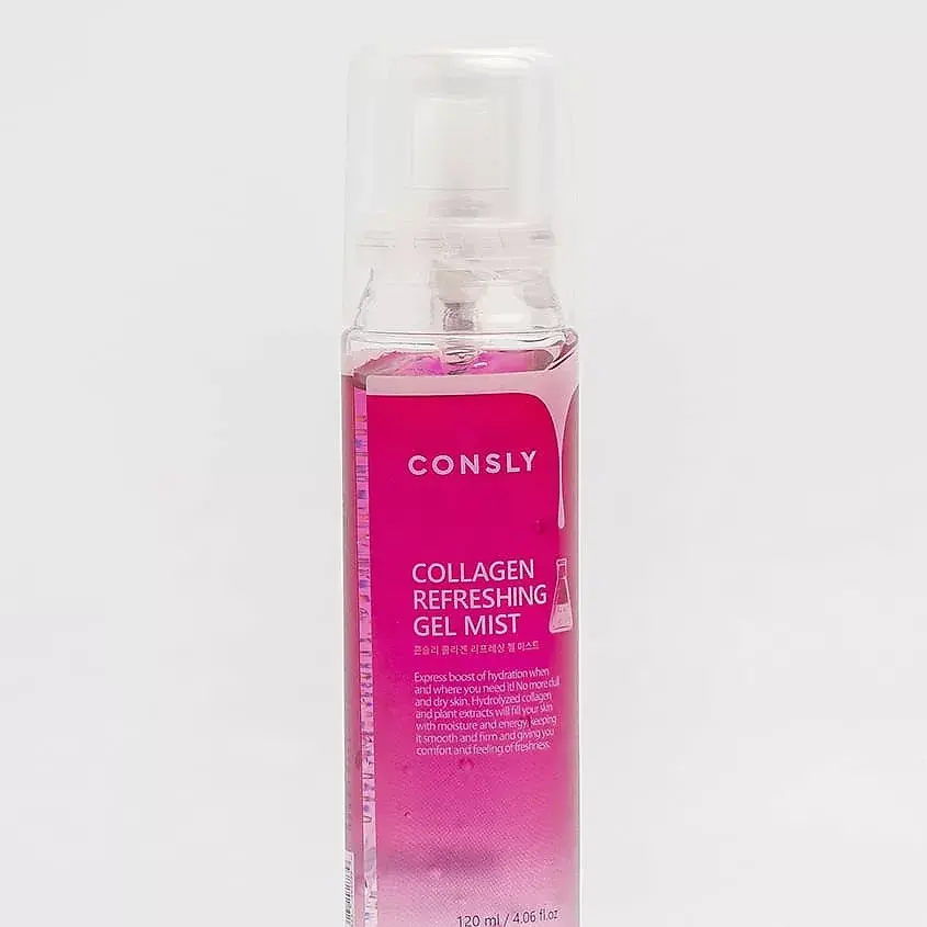 Гель-мист с коллагеном глубоко увлажняет, освежает и тонизирует кожу, предотвращает обезвоживание. Гидролизованный коллаген помогает коже удерживать влагу и укрепляет ее изнутри, сохраняя гладкой и упругой. Спрей распыляется мельчайшими капельками, мгновенно впитываясь, так что его можно использовать и поверх макияжа. Растительный комплекс с центеллой азиатской, камелии, гамамелиса и розы усиливает действие коллагена, оздоравливает покровы, поддерживает свежесть и ровный тон лица.