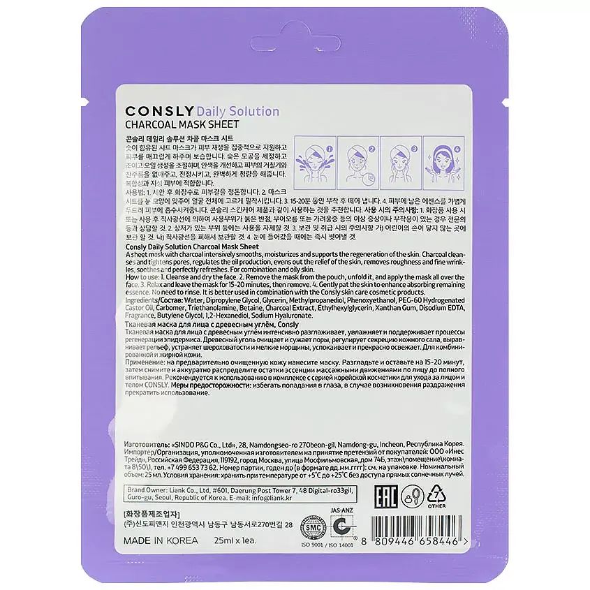 На предварительно очищенную кожу нанесите маску. Разгладьте и оставьте на 15-20 минут, затем снимите и аккуратно распределите остатки эссенции массажными движениями по лицу до полного впитывания. Рекомендуется к использованию в комплексе с серией корейской косметики для ухода за лицом и телом CONSLY.