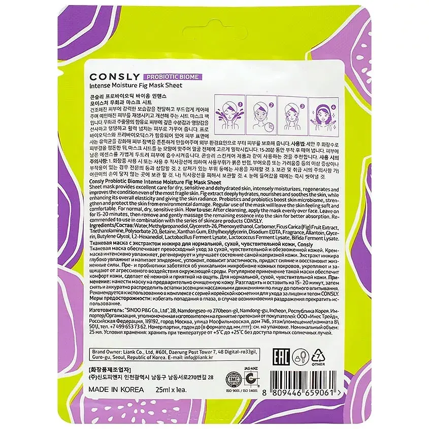 Нанести маску на предварительно очищенную кожу. Разгладить и оставить на 15-20 минут, затем снять и аккуратно распределить остатки эссенции массажными движениями по лицу до полного впитывания. Рекомендуется к использованию в комплексе с серией корейской косметики для ухода за лицом и телом CONSLY.