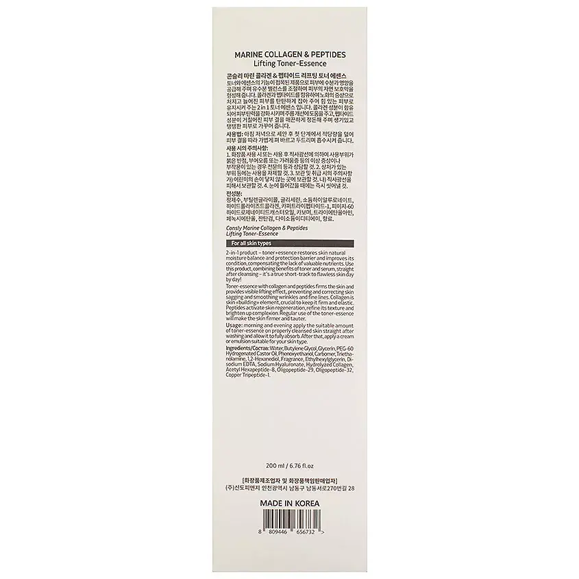Тонер-эссенция с коллагеном и пептидами подтягивает и укрепляет кожу, делает ее более упругой и эластичной, активно способствует сокращению морщин и предотвращает деформационные изменения. Коллаген – незаменимый элемент, восстанавливающий упругость и гладкость кожи. Пептиды обеспечивают комплексную регенерацию кожи, улучшая ее текстуру и тон. Регулярное применение тонера-эссенции сделает кожу более гладкой и подтянутой.
