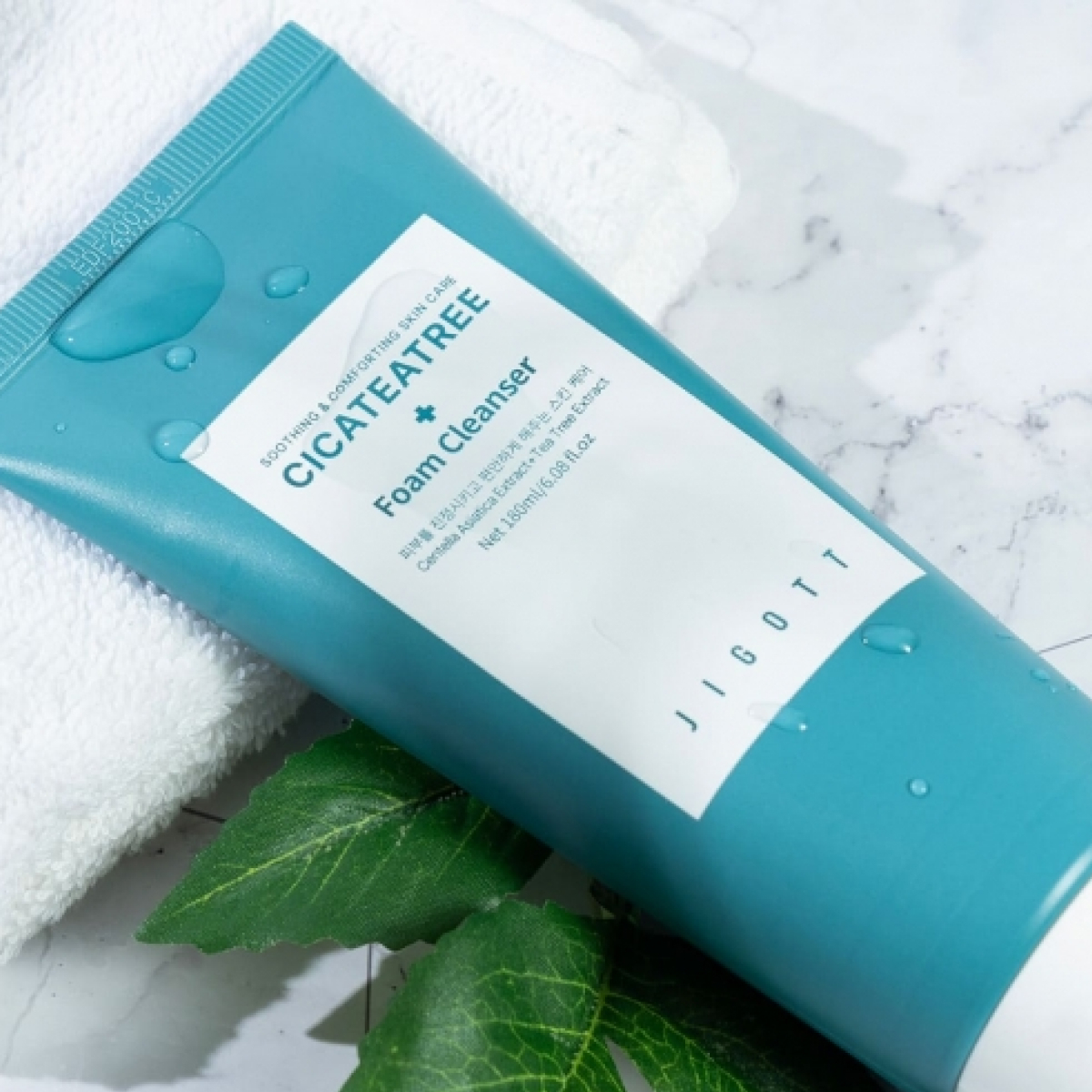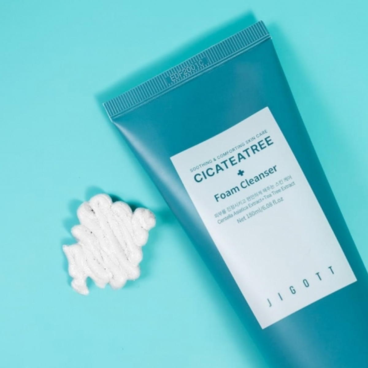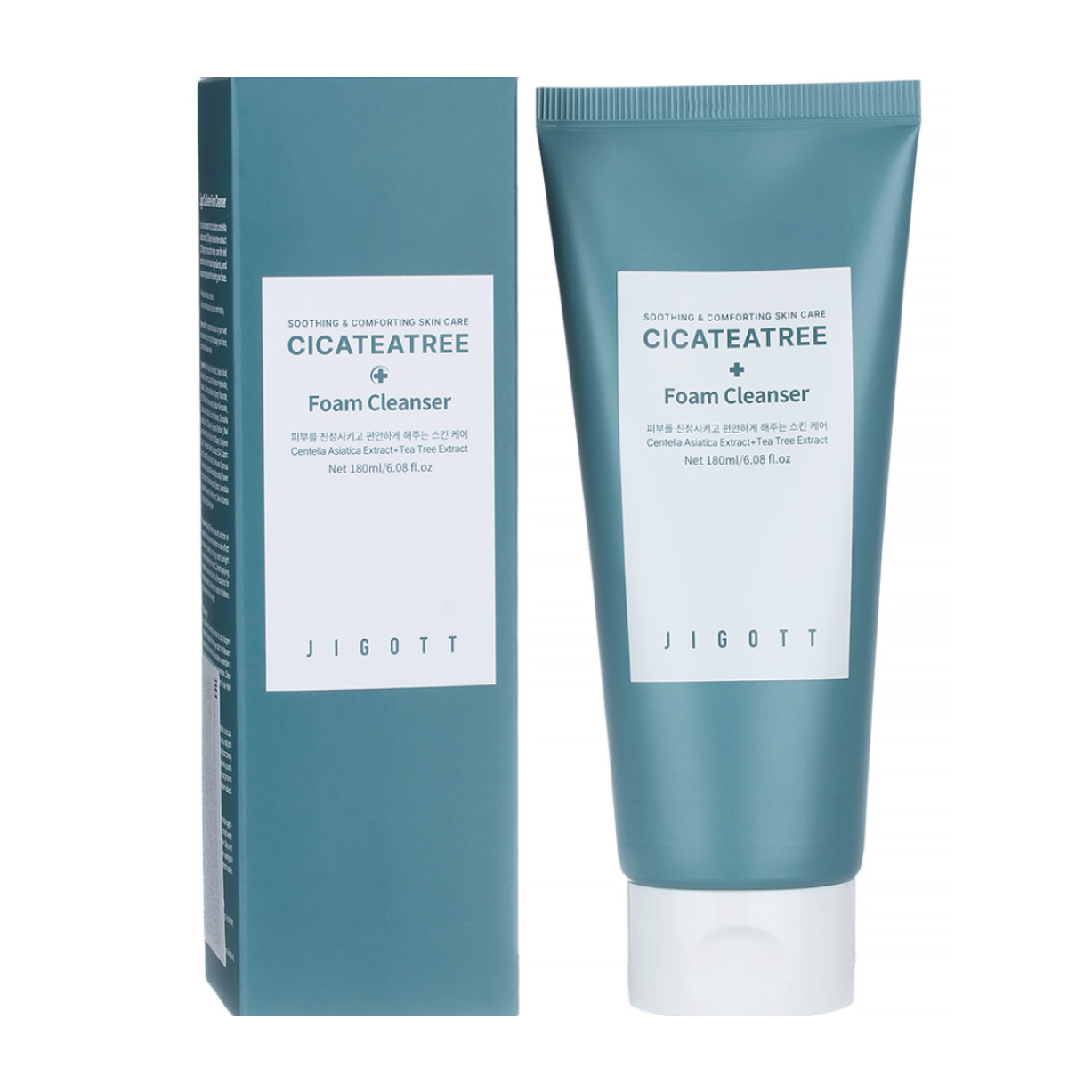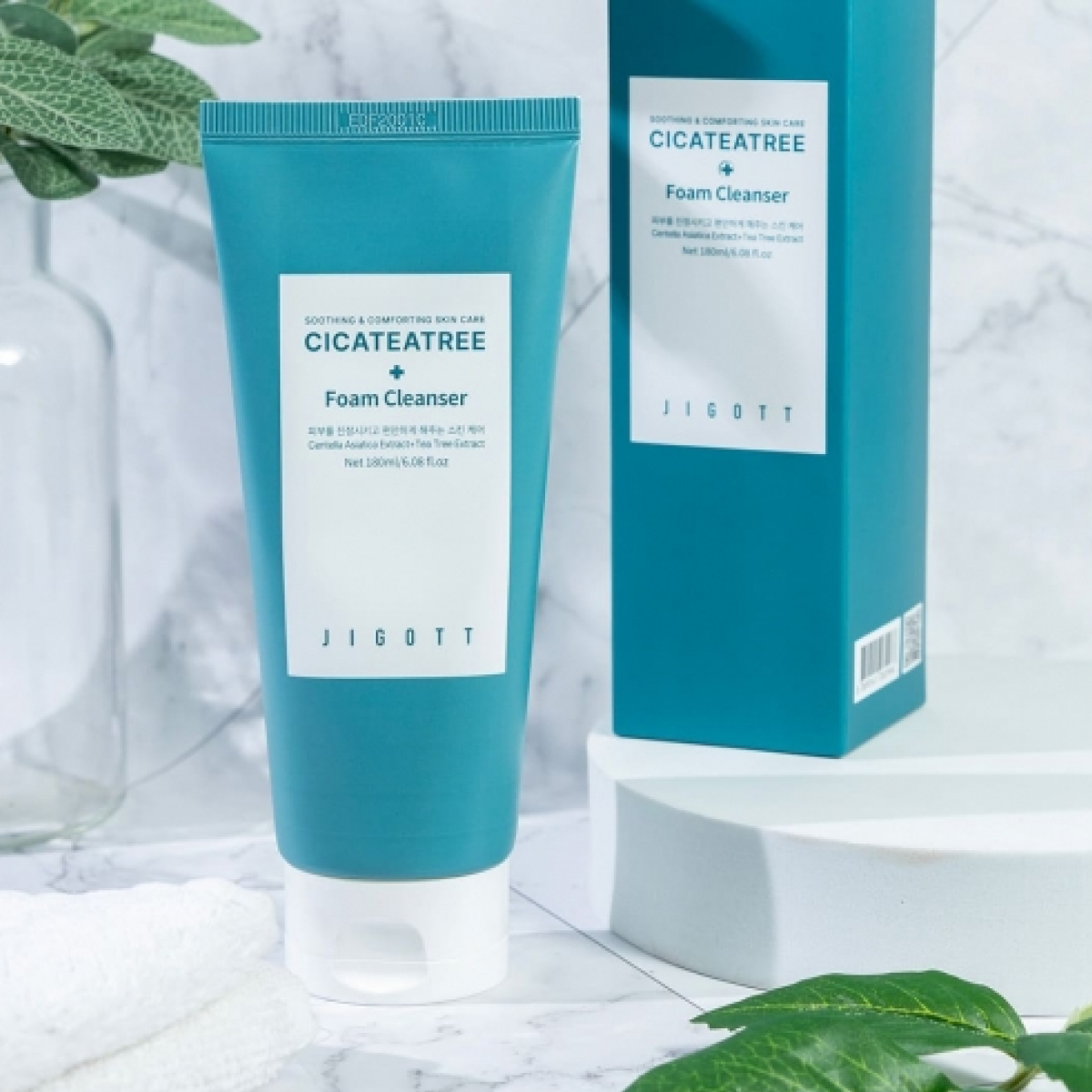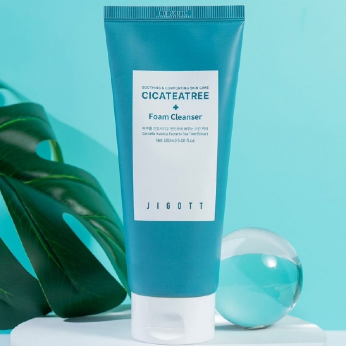 Успокаивающая пенка для умывания Jigott Cicateatree Foam Cleanser с экстрактами центеллы азиатской и чайного дерева — это эффективное средство для ежедневного очищения и ухода за кожей. Пенка предназначена для глубокого очищения, удаления омертвевших клеток, загрязнений и комедонов, а также для уменьшения чувствительности и воспалений.