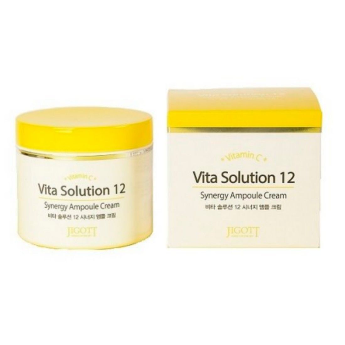 Jigott Ампульный крем для лица Vita Solution 12 Synergy Ampoule Cream – это инновационное средство, разработанное для эффективной борьбы с признаками старения кожи и возвращения ей здорового сияния. Этот крем, объемом 100 мл, сочетает в себе мощь ампульной сыворотки и нежность кремовой текстуры, обеспечивая комплексный уход и заметные результаты.