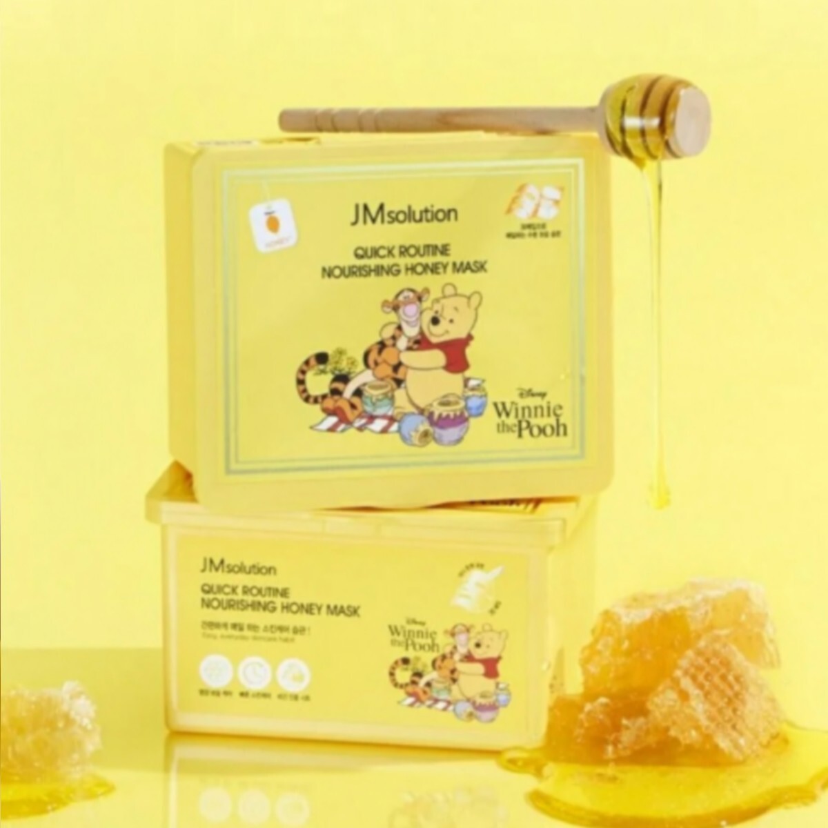 Набор питательных тканевых масок для лица JMsolution Disney Quick Routine Nourishing Honey Mask с экстрактом меда повышает защитные функции дермы, улучшает структуру кожи, восстанавливает обменные процессы в эпидермисе, ускоряет кожный метаболизм и регенерацию клеток. Маска питает, устраняет ороговевшие частицы с поверхности лица, повышает упругость и плотность тканей, а также стимулирует выработку природного коллагена и выравнивает тон лица.
