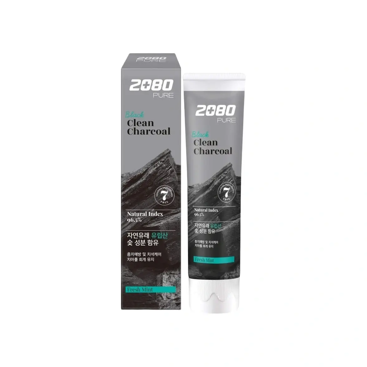 В состав зубной пасты 2080 Black Clean Charcoal Toothpaste для отбеливания входит порошок древесного угля. Древесный уголь полирует и отбеливает поверхность зубов, эффективно устраняет налет, предупреждает образование зубного камня и кариеса.