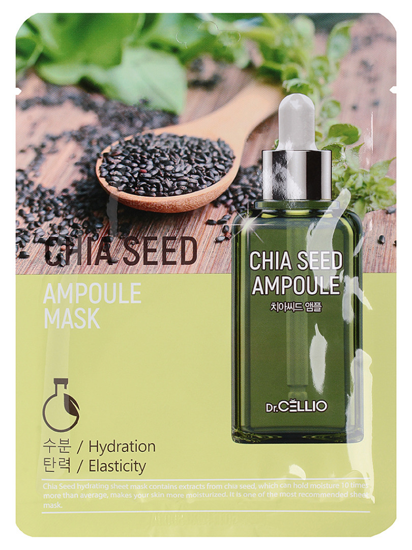 Тканевая маска для лица с экстрактом семян чиа. Семена чиа — настоящее открытие десятилетия.В этих миниатюрных чёрных зернышках содержится высокая концентрация витаминов, антиоксидантов и ценных ферментов. Семена Чиа имеют способность удерживать в десять раз больше влаги чем их собственный вес. Уникальная формула маски содержит полезные вещества, нежная и мягкая основа свободно ложится на кожу, легко впитывается.