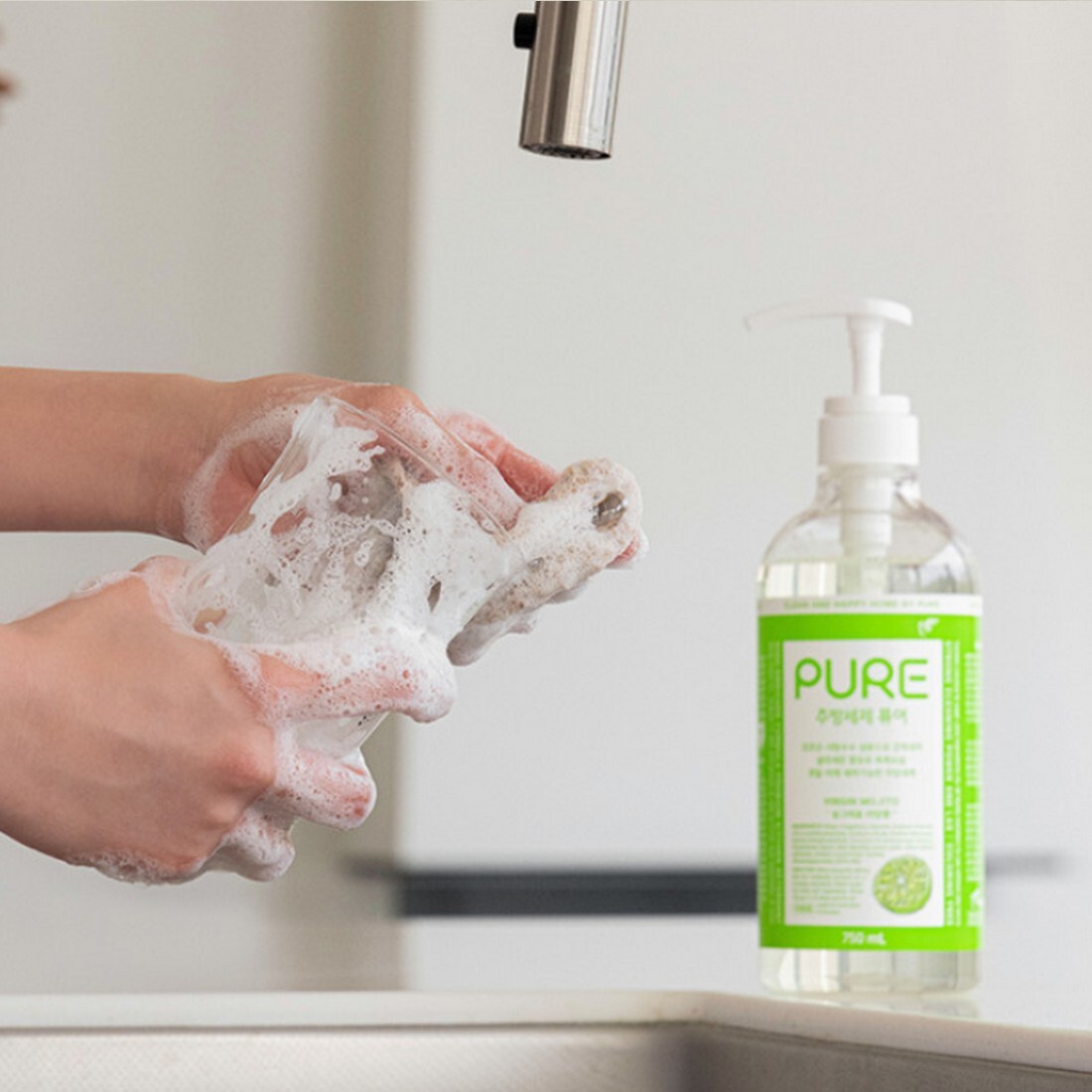 Нанести немного средства на губку, вымыть посуду. Промывать посуду не менее 10 секунд, а фрукты не менее 30 секунд под проточной водой.